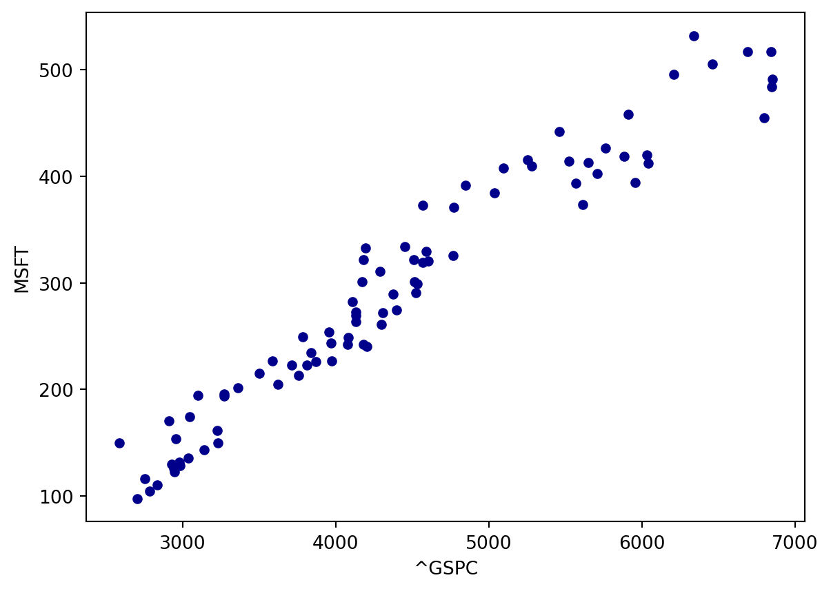 Let’s start with an example. Imagine we want to see whether there is a relationship between the S&P500 and Microsoft stock.